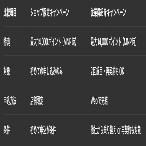 つまり、通常の申込特典に加えて、ショップでの初回申込なら3,000ポイント上乗せされて合計14,000ポイントを狙える仕組みですね。